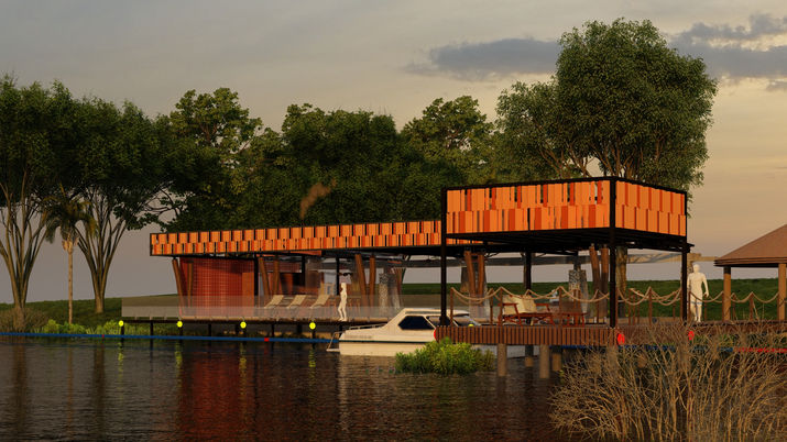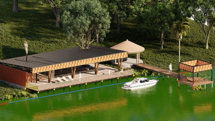 Este espacio se concibe como un pabellón recreativo abierto al paisaje, diseñado para integrarse con el agua, la vegetación y la vida social del entorno. La arquitectura se resuelve a partir de una estructura liviana y horizontal que extiende la cubierta sobre plataformas y terrazas, generando sombra, continuidad visual y una relación directa con el borde del lago.